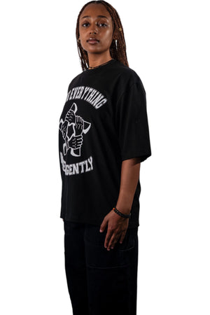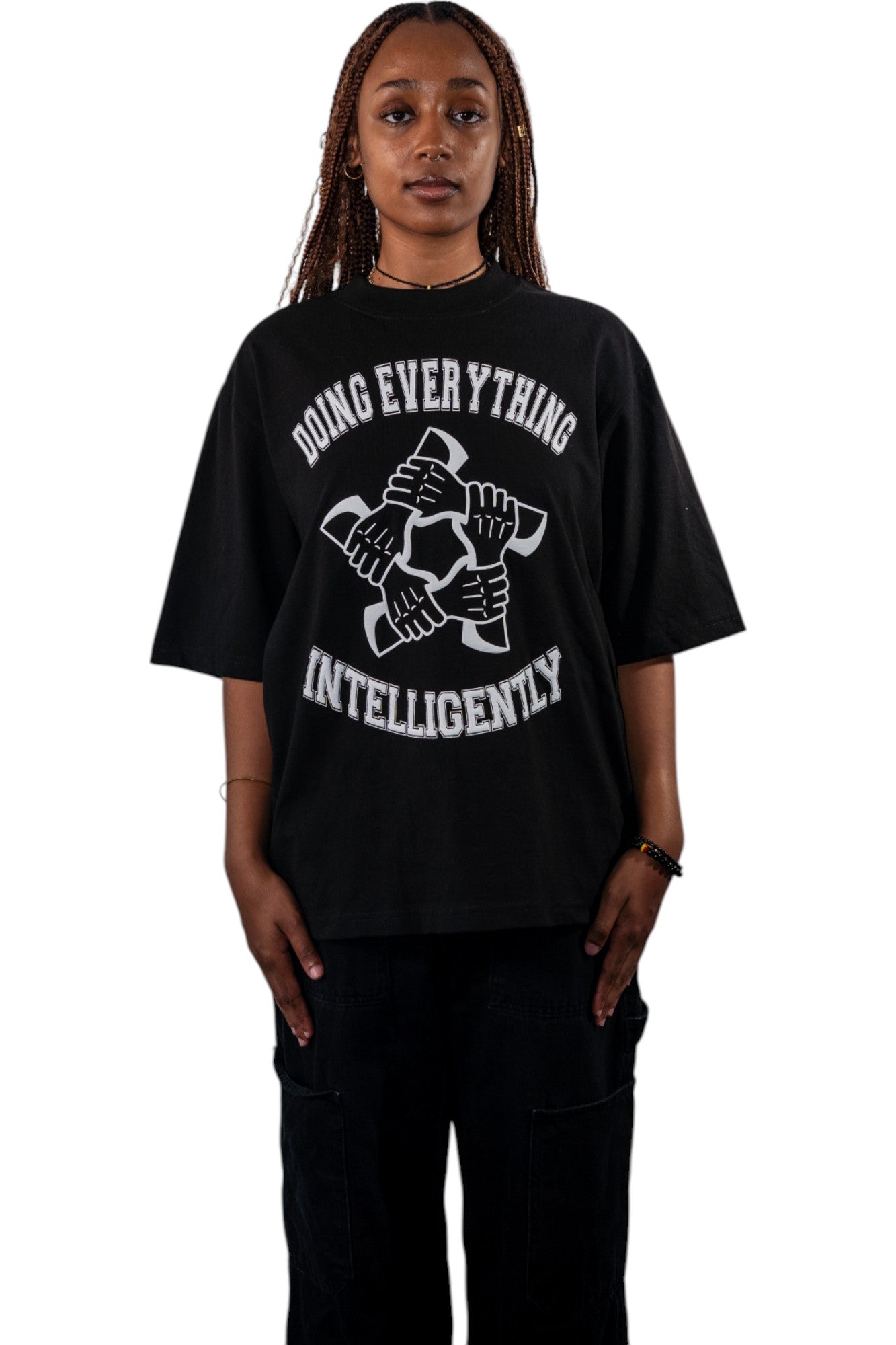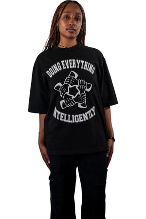 Heavyweight cotton jersey T-shirt. Full-color DTG print of DEI/Unity hand symbol at front.