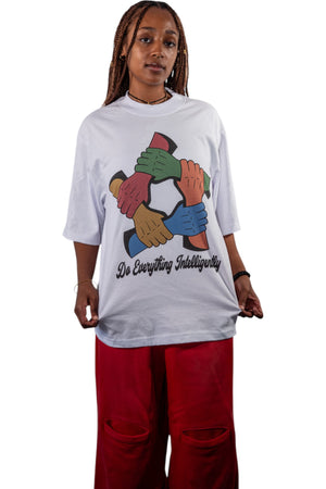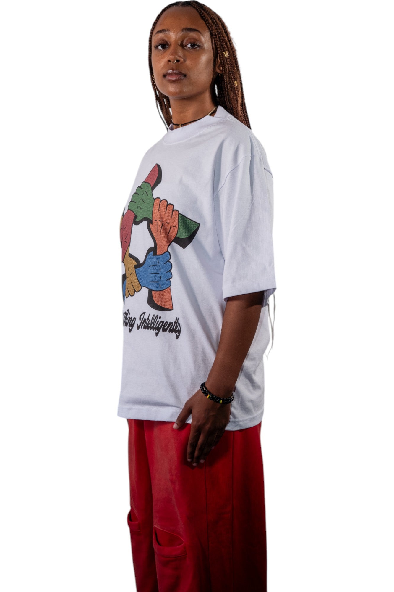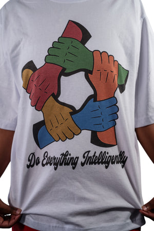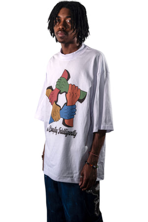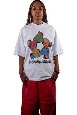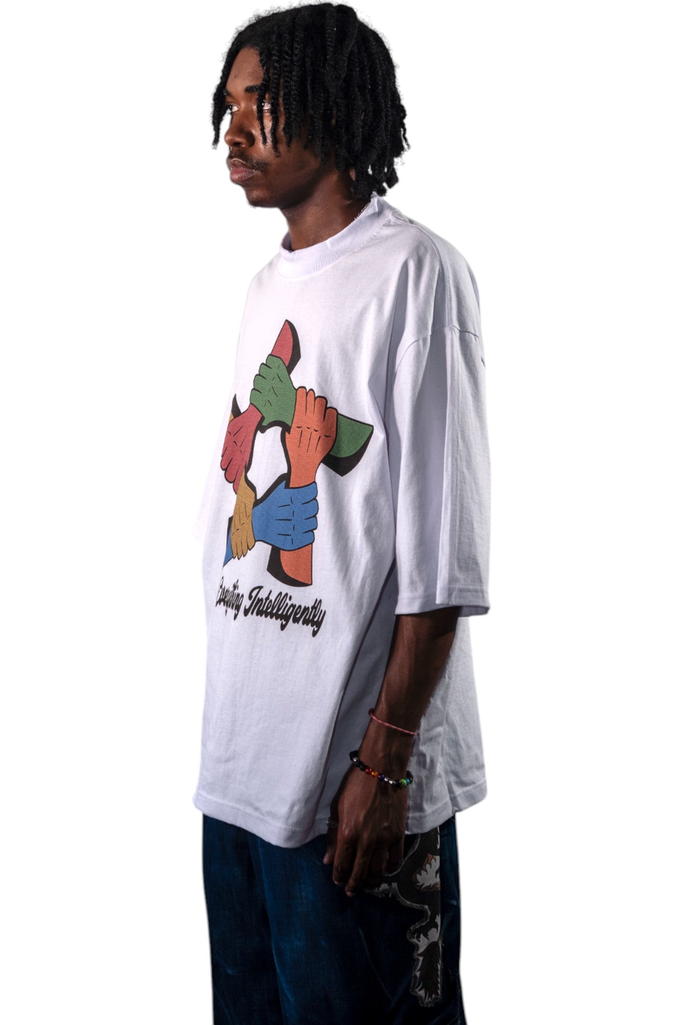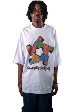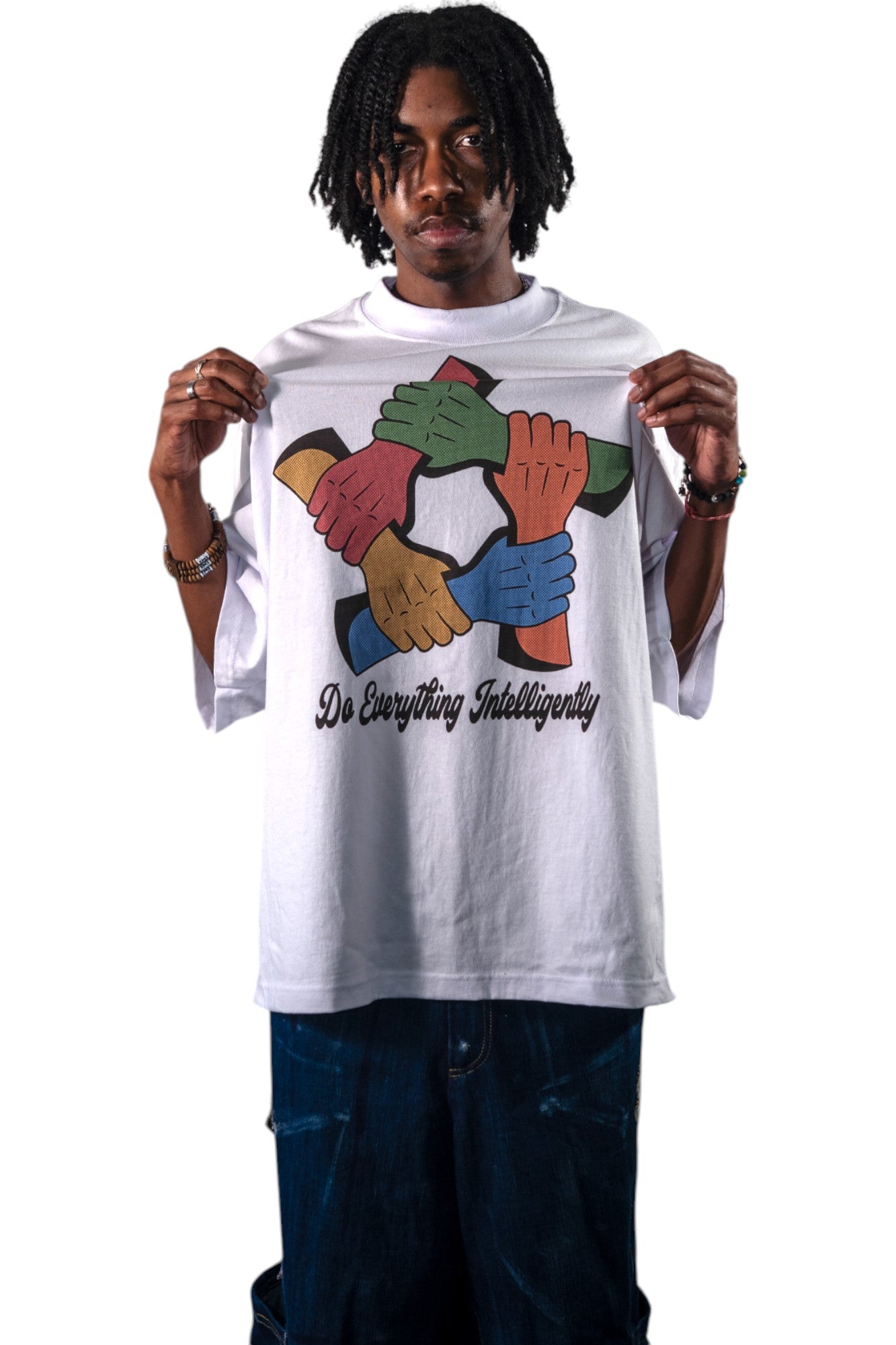 Heavyweight cotton jersey T-shirt. Full-color DTG print of DEI/Unity hand symbol at front.